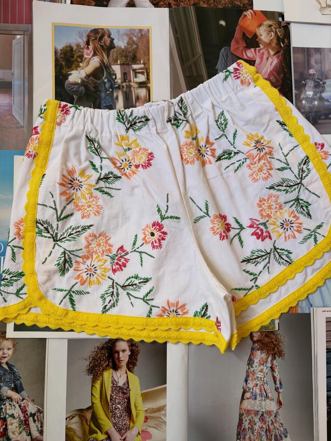 I must have: calzoncini ricavati da tessuti vintage impreziositi da ricami come tende, tovaglie e lenzuola. Il marchio Orsina, creato da Orsina Dansi oltre dieci anni fa, propone oltre agli iconici pantaloncini anche gonne, pantaloni lunghi, pochette e altro.
